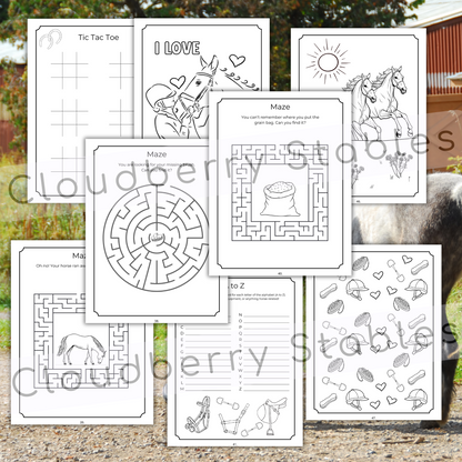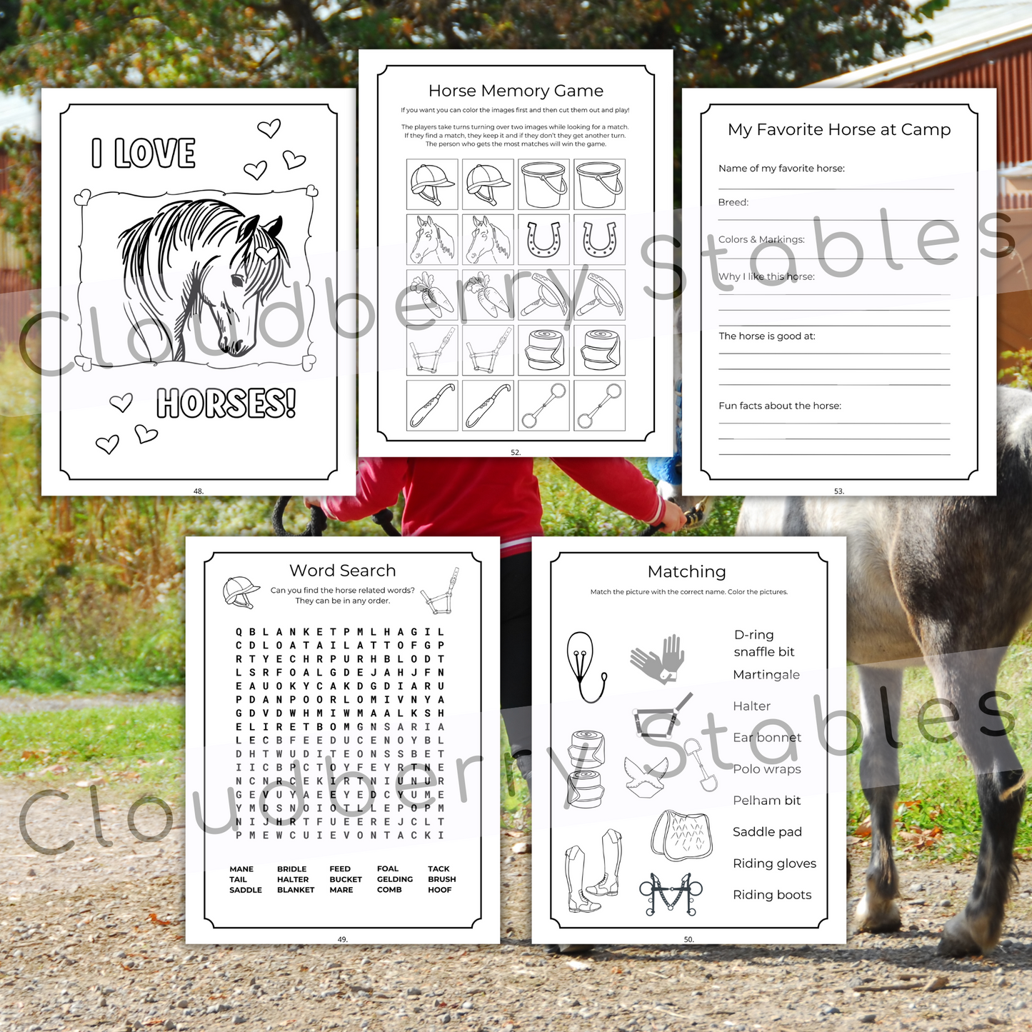 Printable Horse Camp Activity & Coloring Workbook of 64 pages